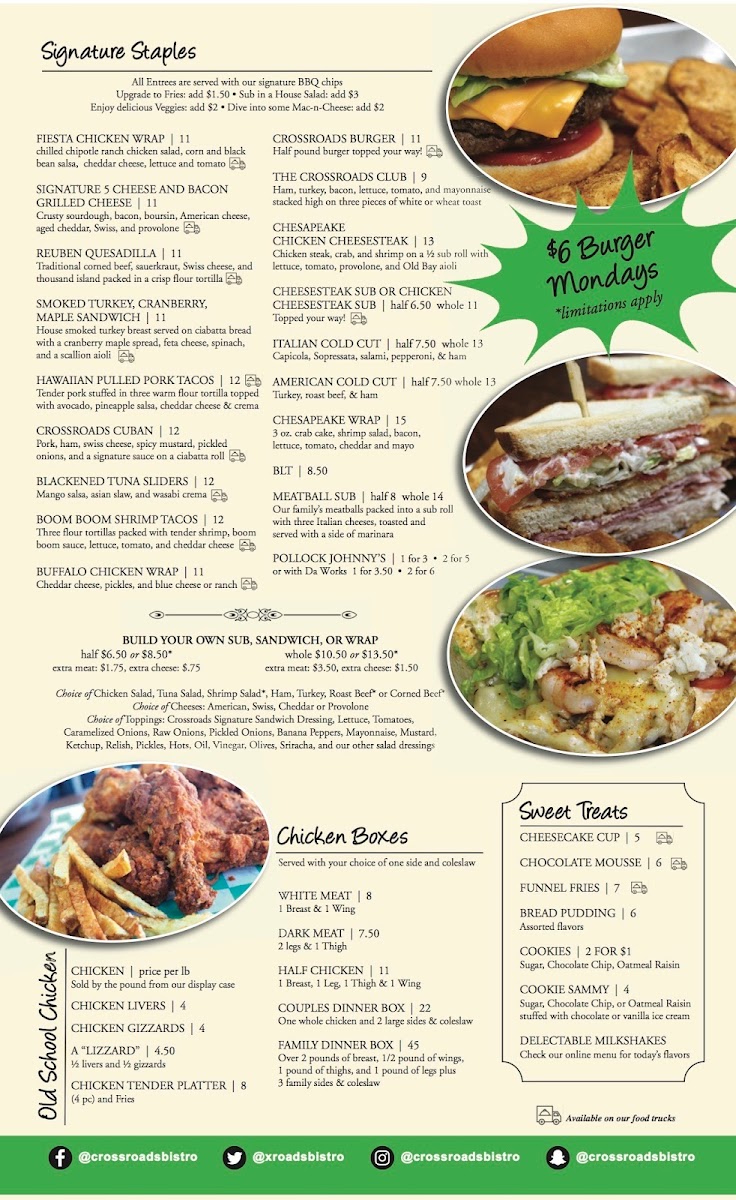 Welcome to Crossroads Bistro, a culinary gem nestled in Edgemere, MD. Renowned for its exceptional catering services, this bistro transforms events into unforgettable feasts. Each dish showcases a meticulous balance of flavors, from their renowned Turkey Sandwich with homemade cranberry jelly to an exquisite Cuban sandwich packed with savory pulled pork and spicy mustard.